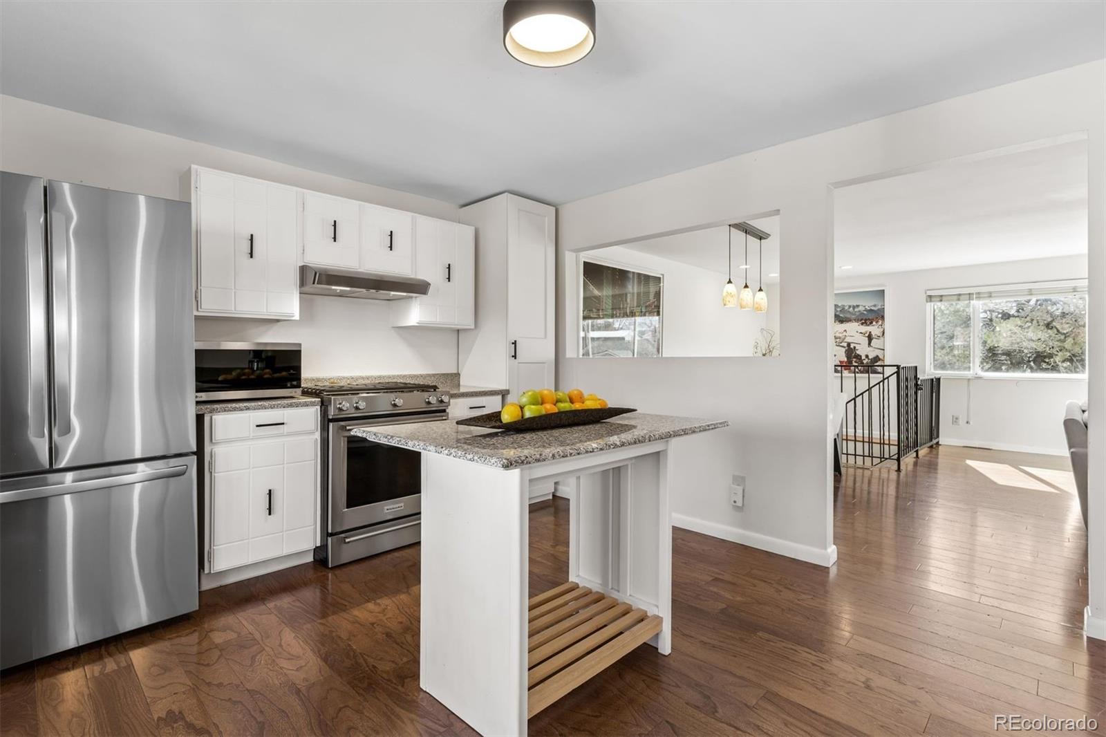 Welcome to your next chapter in one of Centennial's most sought-after spots; Southglenn. This beautifully updated 4-bedroom, 2-bath home with approximately 2,000 sq ft blends subtle mid-century-modern styling cues with a highly functional layout and thoughtful updates throughout, creating a space that's effortlessly stylish and move-in ready. Step inside the welcoming entry, and you'll immediately notice the abundance of natural light pouring through the south facing living room windows, brightening every corner and highlighting the warm wood floors that flow seamlessly from room to room. The kitchen shines with fresh, modern appliances, while crisp new paint (inside and out), updated lighting, and a brand-new deck add that perfect touch of contemporary comfort without overpowering the home's clean, timeless lines. The main floor features an open layout across the living and dining areas, with a natural flow into the updated kitchen. Down the hall two generous bedrooms and a lovely bath complete the space. Downstairs, find two more living areas, perfectly anchored by a stunning fireplace - perfect for relaxing movie nights or casual entertaining. Two additional bedrooms and a recently remodeled lower bath complete the layout; and with Ting fiber optic service installed, this home is ideally configured for work from home, gaming or massive video on demand needs! Outside, the over 10,000 sq ft feels like your private retreat--multiple yard spaces invite everything from morning coffee on the deck to weekend gatherings, gardening, or simply soaking up the Colorado sun. Nestled in the heart of desirable Southglenn, you're just minutes from The Streets at SouthGlenn for shopping, dining, and community vibes, and centrally located for an easy commute to DTC for work or play. Don't miss this stunning home!