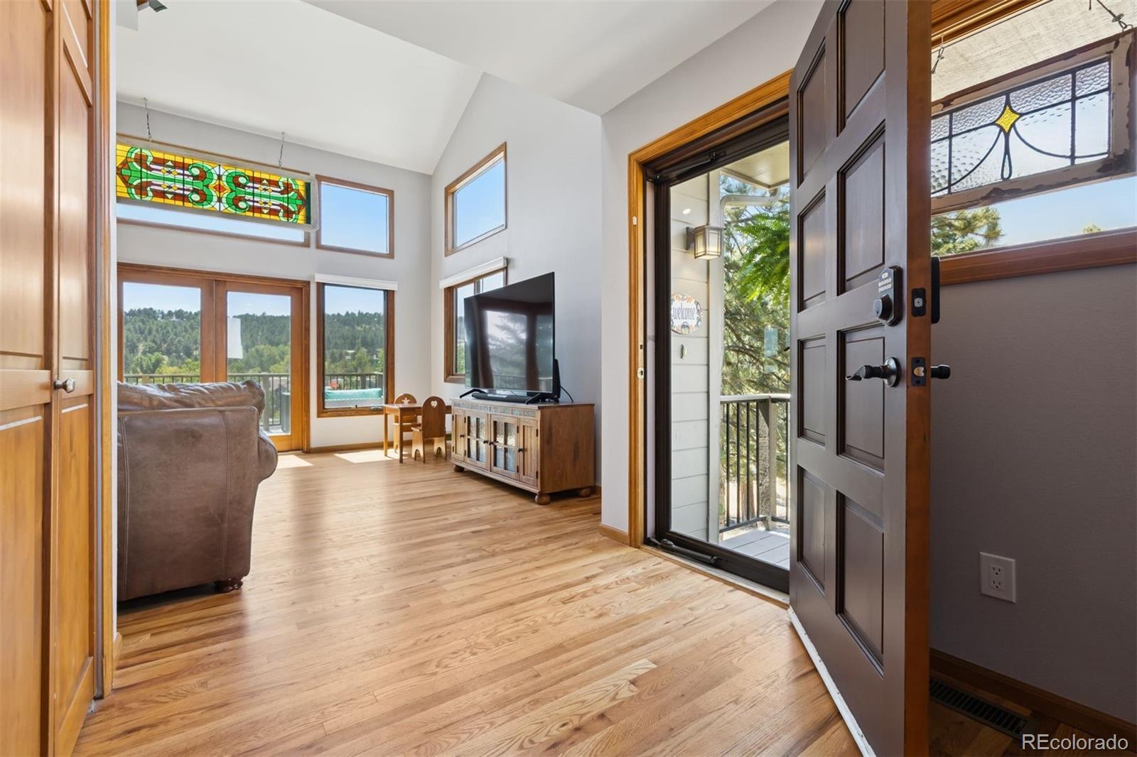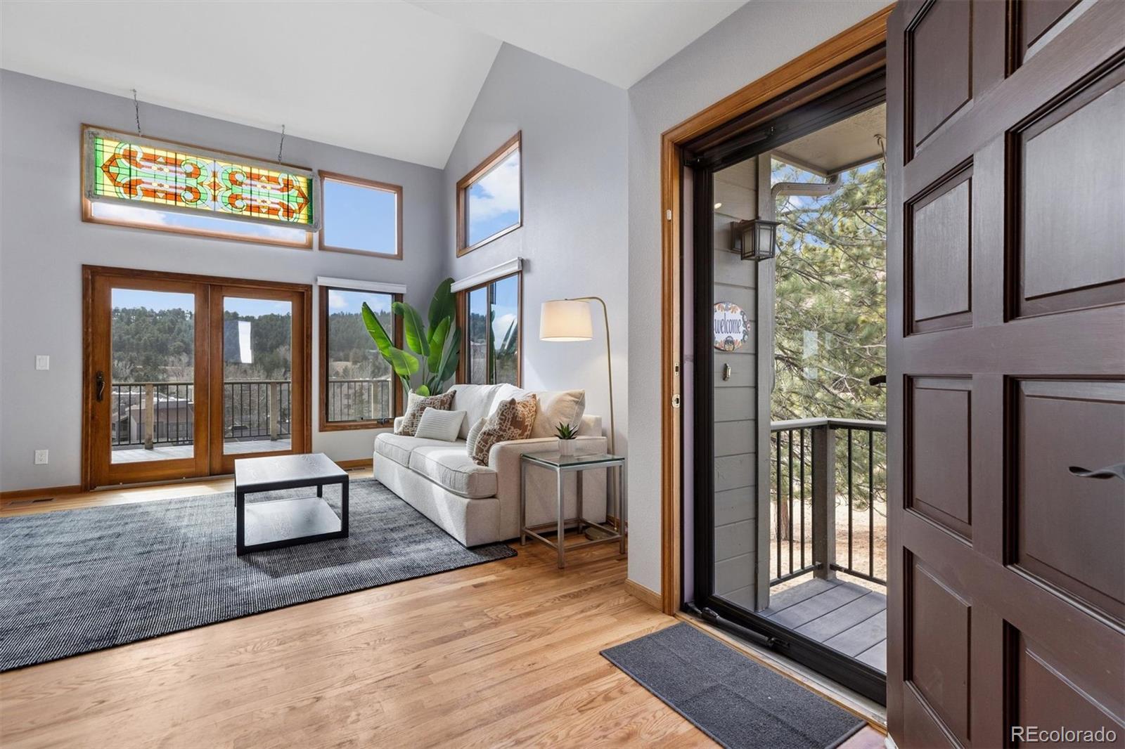 Nestled in the serene foothills of Genesee Village, this exquisite 3-bedroom, 3-bathroom home for sale in Golden, CO, blends modern elegance with breathtaking mountain views and natural tranquility--offering a peaceful retreat just 25 minutes (20 miles) from downtown Denver, 10 minutes (6 miles) to downtown Golden, 15 minutes (10 miles) to Evergreen, and a quick 60-minute drive (60 miles) to Summit County ski resorts. Recently extensively updated, this 2,458 sq ft property boasts new windows for enhanced energy efficiency, a spa-like primary bathroom with dual vanities and oversized walk-in shower, fresh paint throughout, removed popcorn ceilings for a sleek look, plus new whole-home humidifier and air scrubber systems ensuring pristine indoor air quality. Step into a light-filled interior designed to maximize those stunning Rocky Mountain vistas. The main floor's vaulted-ceiling living room, anchored by a cozy fireplace, flows seamlessly to a large upper deck--perfect for indoor-outdoor entertaining amid frequent wildlife sightings like deer and elk. The bright kitchen offers ample counter and cabinet space, while the adjacent dining area invites relaxed gatherings. Upstairs, a versatile loft serves as an ideal home office or study. The primary suite impresses with its own fireplace, spacious walk-in closet, and luxurious en-suite bath. The lower level adds two more bedrooms, a full bath, and a second family room with another fireplace, opening to a covered deck for year-round enjoyment. Community perks abound: Stroll to the neighborhood pool, tennis courts, pond, and trails, all included in this low-maintenance mountain lifestyle. With quick I-70 access, you're minutes from Golden's breweries, Evergreen's outdoor adventures, and Summit County's world-class skiing. Ideal for families or retirees seeking a Golden CO home with views, updates, and convenience. See 23860geneseevillageroad.com for photos, 3D tour, video, and more.