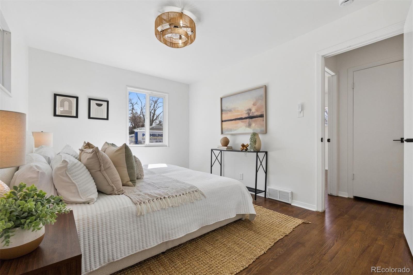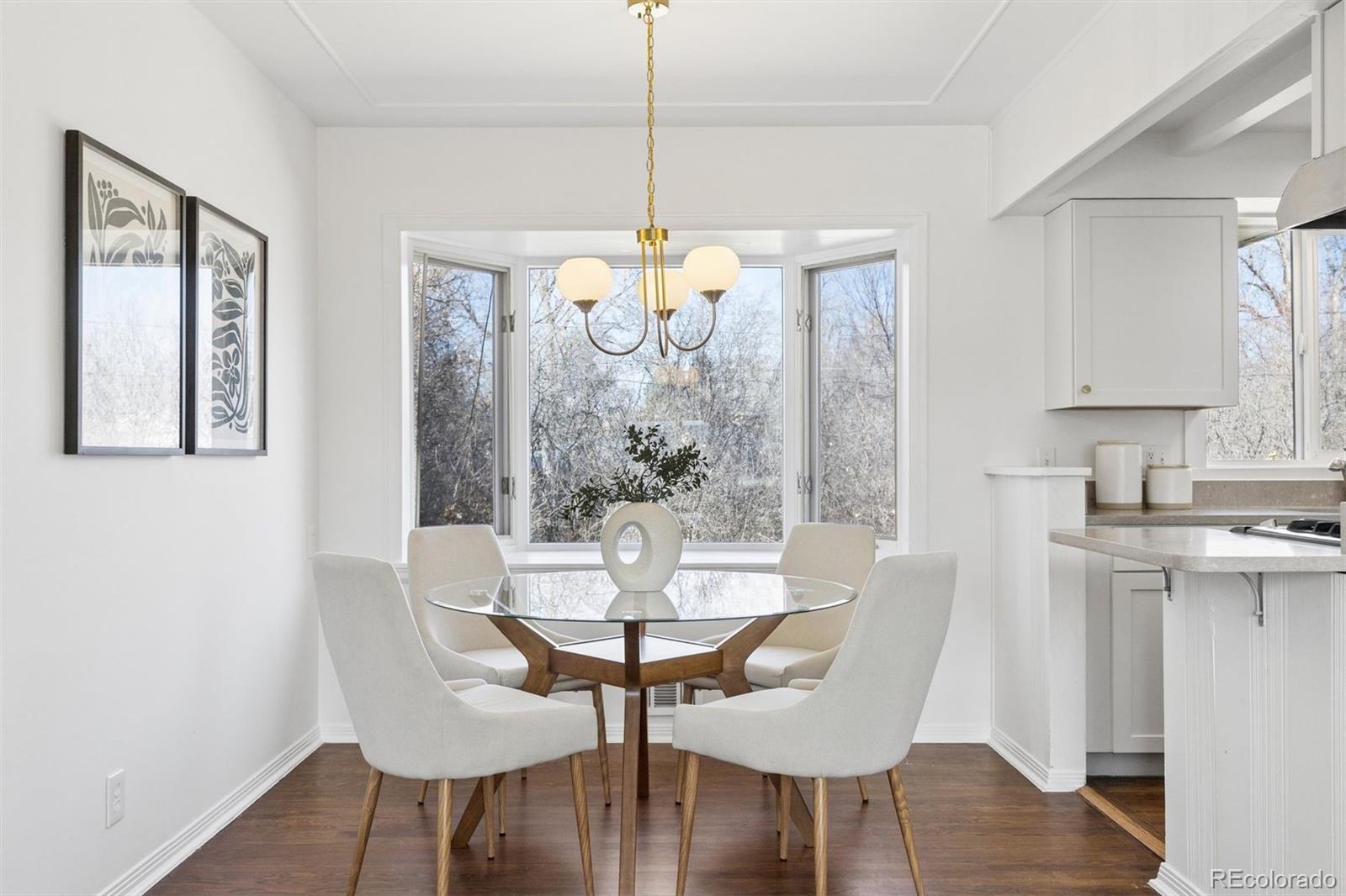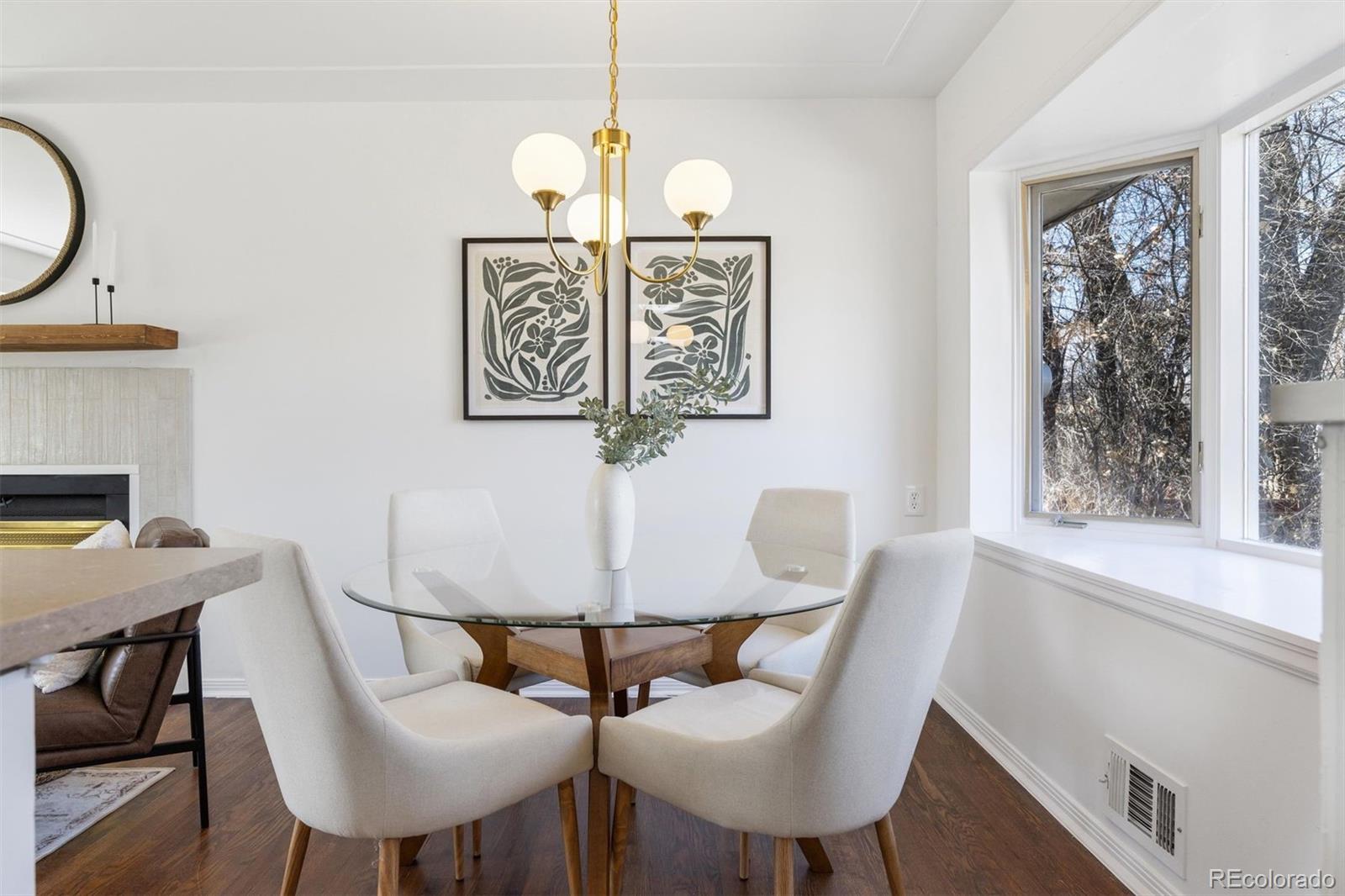 This charming ranch-style home located in the coveted Cherry Creek School District and top-rated Cherry Creek High School boundaries offers the perfect blend of updated elegance and timeless comfort, all on a large, private lot with mature landscaping. Step inside to nearly 2,300 sq ft of thoughtfully refreshed living space, featuring fresh paint throughout, redone wood floors, modern lighting, newer roof and hot water heater, and more. The bright, casually elegant kitchen flows seamlessly into the dining area and beyond, with crisp white cabinetry, gold hardware, a sleek new refrigerator, and an open sightline that makes entertaining feel effortless. Large bay windows let in tons of natural light, while the first of two cozy fireplaces anchors the large main living room. Three main floor bedrooms, including the Primary with a private half bath plus a convenient full bath complete the main floor. Downstairs, a massive fourth bedroom provides plenty of space for a guest suite, or home office or gym area. The second fireplace creates a charming media/game room in the large living area; perfect for fun game or movie nights. A third bathroom, along with a large laundry and utility area complete the basement. Outside, the expansive backyard oasis with mature trees provides plenty of room for play, gardening, or simply unwinding around the fire pit under the stars. Ideally located near Yale & I-25 light rail, with Cherry Creek or DTC just minutes away, yet situated in a quiet neighborhood, this updated home is an ideal combination of style, size and location. Don't miss out!