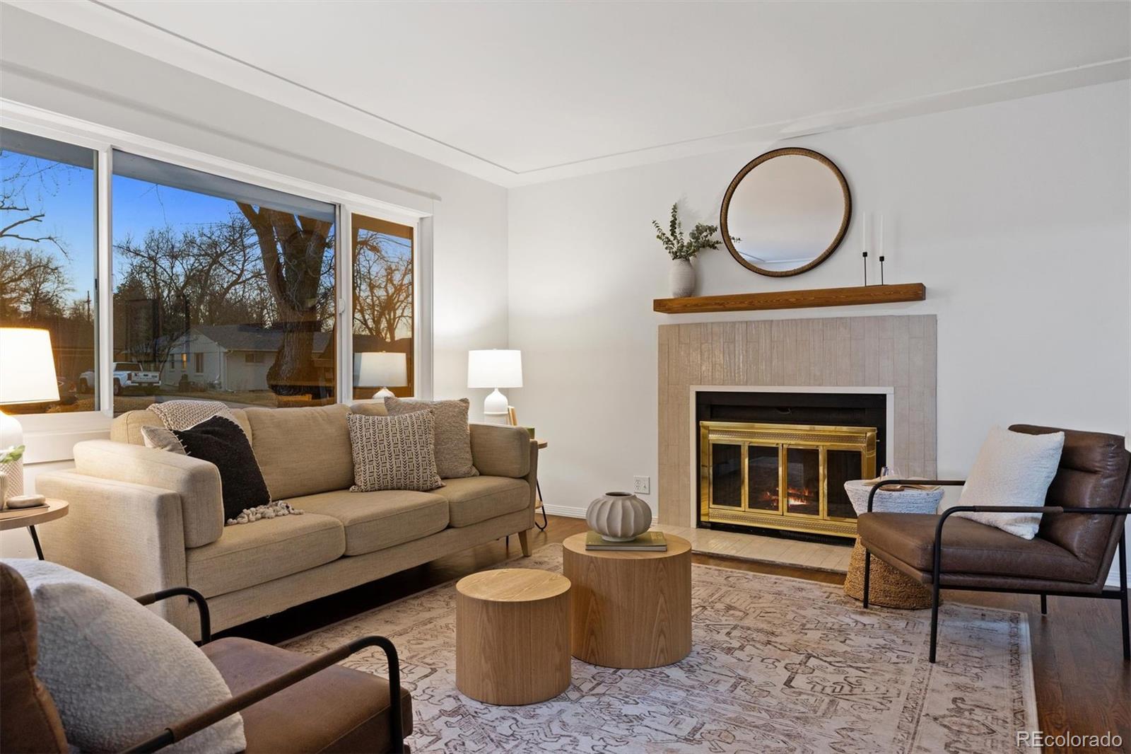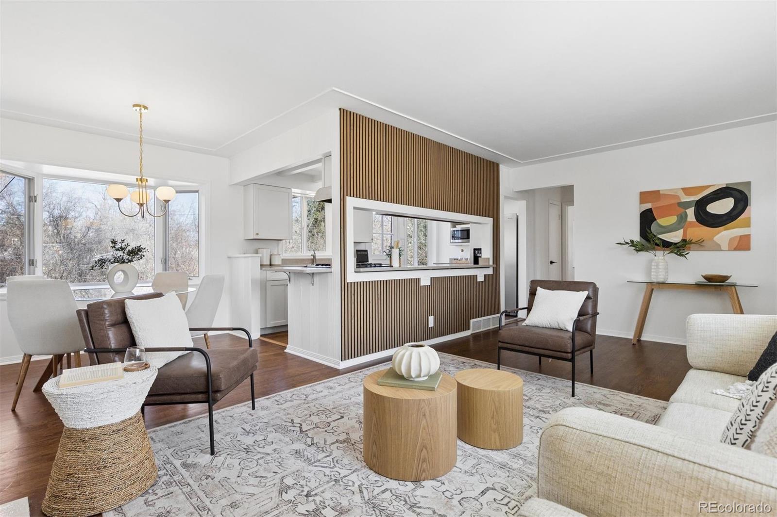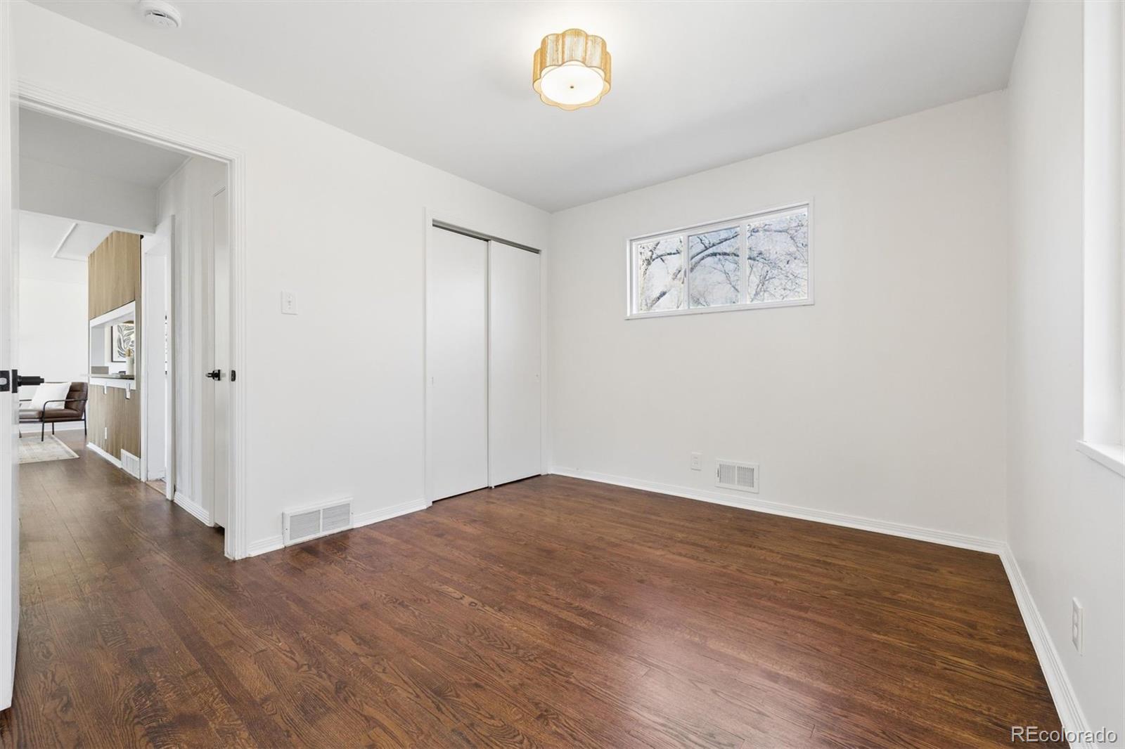 This charming ranch-style home located in the coveted Cherry Creek School District and top-rated Cherry Creek High School boundaries offers the perfect blend of updated elegance and timeless comfort, all on a large, private lot with mature landscaping. Step inside to nearly 2,300 sq ft of thoughtfully refreshed living space, featuring fresh paint throughout, redone wood floors, modern lighting, newer roof and hot water heater, and more. The bright, casually elegant kitchen flows seamlessly into the dining area and beyond, with crisp white cabinetry, gold hardware, a sleek new refrigerator, and an open sightline that makes entertaining feel effortless. Large bay windows let in tons of natural light, while the first of two cozy fireplaces anchors the large main living room. Three main floor bedrooms, including the Primary with a private half bath plus a convenient full bath complete the main floor. Downstairs, a massive fourth bedroom provides plenty of space for a guest suite, or home office or gym area. The second fireplace creates a charming media/game room in the large living area; perfect for fun game or movie nights. A third bathroom, along with a large laundry and utility area complete the basement. Outside, the expansive backyard oasis with mature trees provides plenty of room for play, gardening, or simply unwinding around the fire pit under the stars. Ideally located near Yale & I-25 light rail, with Cherry Creek or DTC just minutes away, yet situated in a quiet neighborhood, this updated home is an ideal combination of style, size and location. Don't miss out!